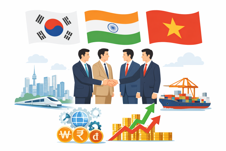Çѱ¹ ±â¾÷µé°ú Àεµ¡¤º£Æ®³² °£ °æÁ¦Çù·Â¿¡ °üÇÑ À̹ÌÁö / Ãâó=êGPT »ý¼º