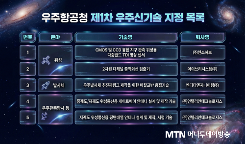 ¿ìÁÖÇ×°øÃ»ÀÌ ¿ìÁֽűâ¼ú 5°³¸¦ ¼±Á¤Çß´Ù. ¿ìÁֽűâ¼ú ÁöÁ¤Àº ¹Î°£ ÁÖµµÀÇ ¿ìÁÖ »ýŰè È®ÀåÀ» Áö¿øÇϱâ À§ÇÑ ¸ñÀûÀ¸·Î ¿ÃÇØºÎÅÍ µµÀԵƴÙ.